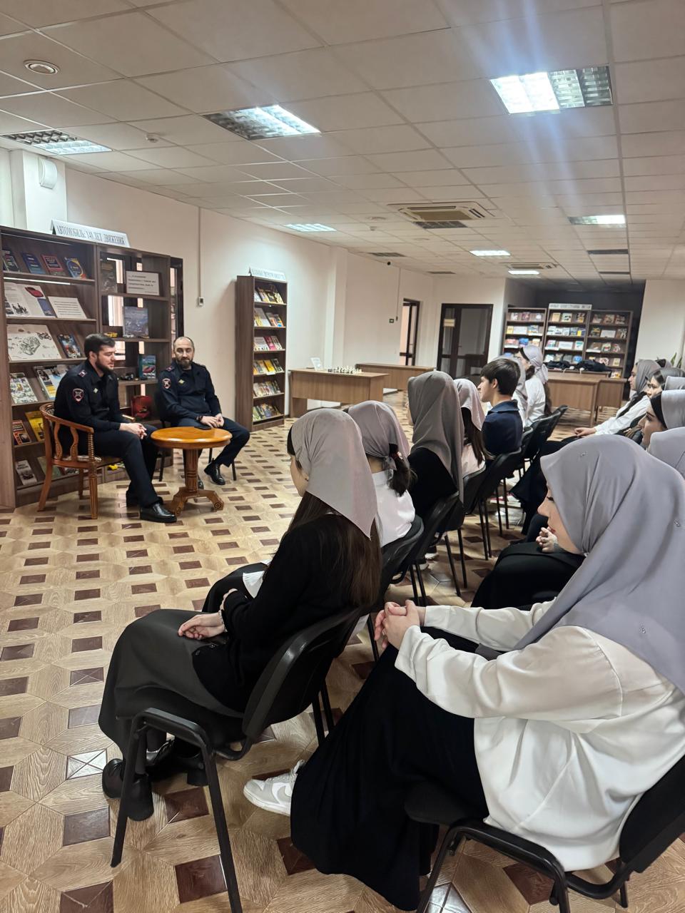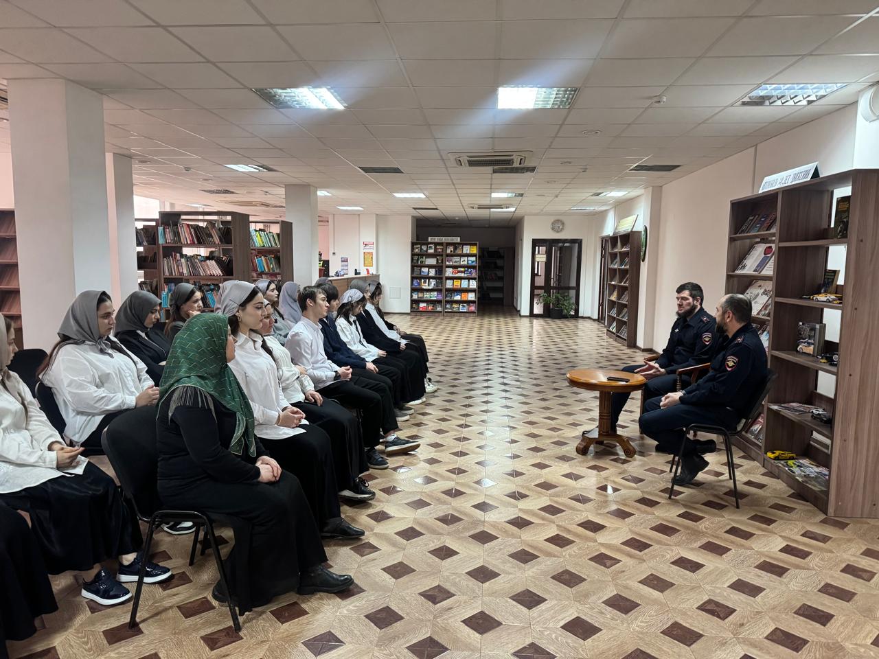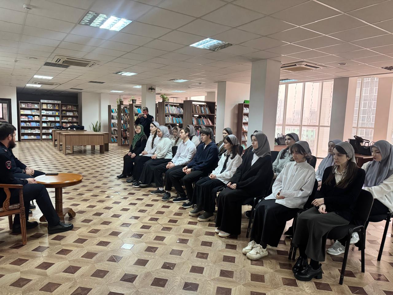 В профилактическом часе приняли участие старший инспектор по особым поручениям отдела пропаганды УГИБДД МВД по ЧР майор полиции Цугаев Артур и инспектор отдела пропаганды УГИБДД по ЧР майор полиции Бектомиров Муса и студенты ЧГК.