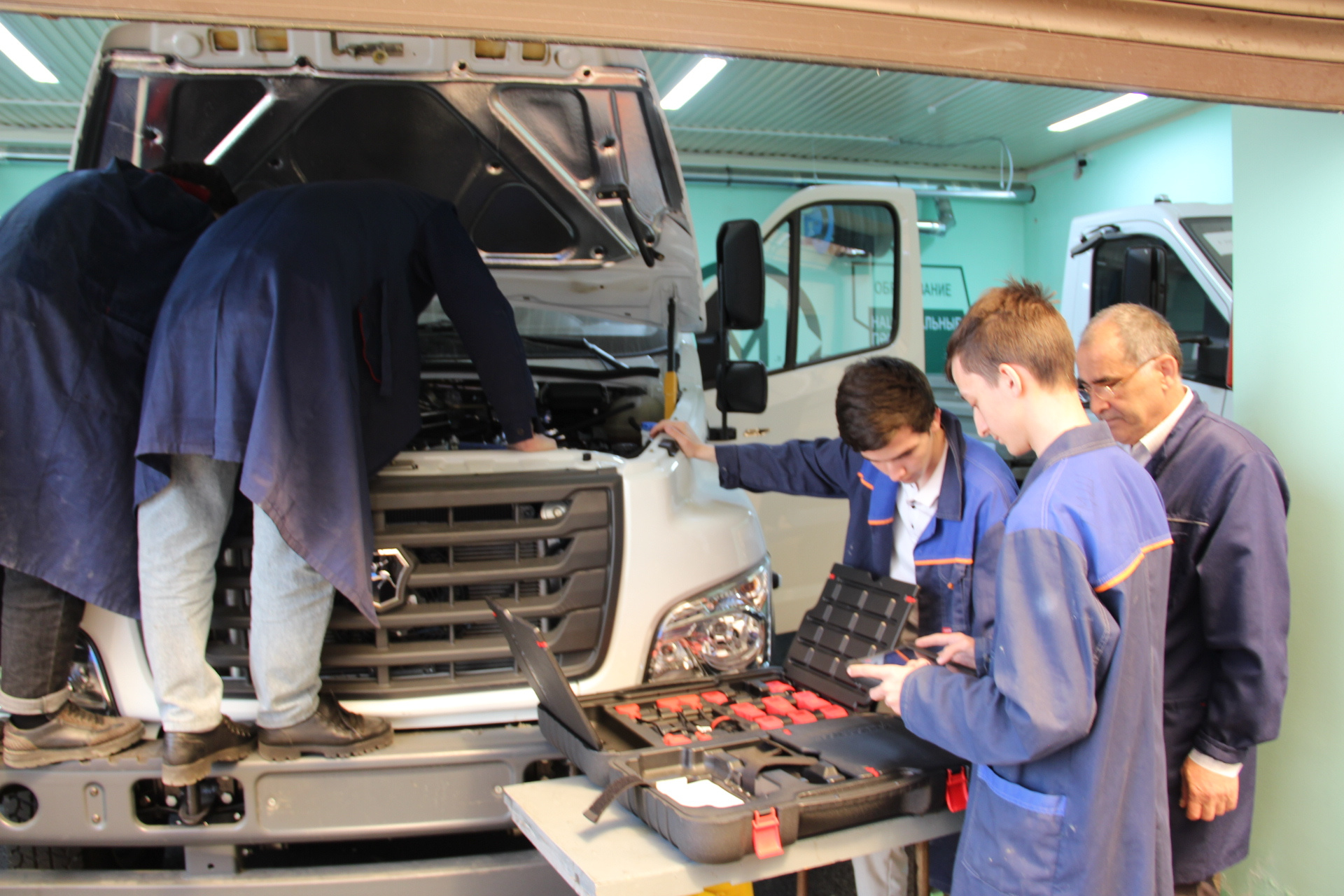 В Чеченском государственном колледже в мастерских созданных в рамках Национального проекта «Образование» Государственной программы Российской Федерации «Развитие образования» по направлению «Обслуживание транспорта и логистика» проходят учебные практики в сроки, установленные рабочими учебными планами, в соответствии с календарным учебным графиком.