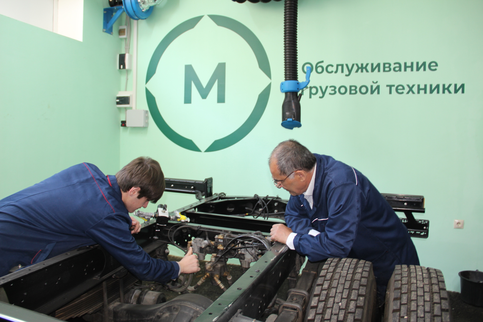 Экзамен проходит в мастерской «Обслуживание грузовой техники», которая располагает 4 грузовыми автомобилями «Газон Next». Данная мастерская входит в пятерку мастерских, созданных в рамках реализации Национального проекта «Образование» Государственной программы Российской Федерации «Развитие образования» по направлению «Обслуживание транспорта и логистика».