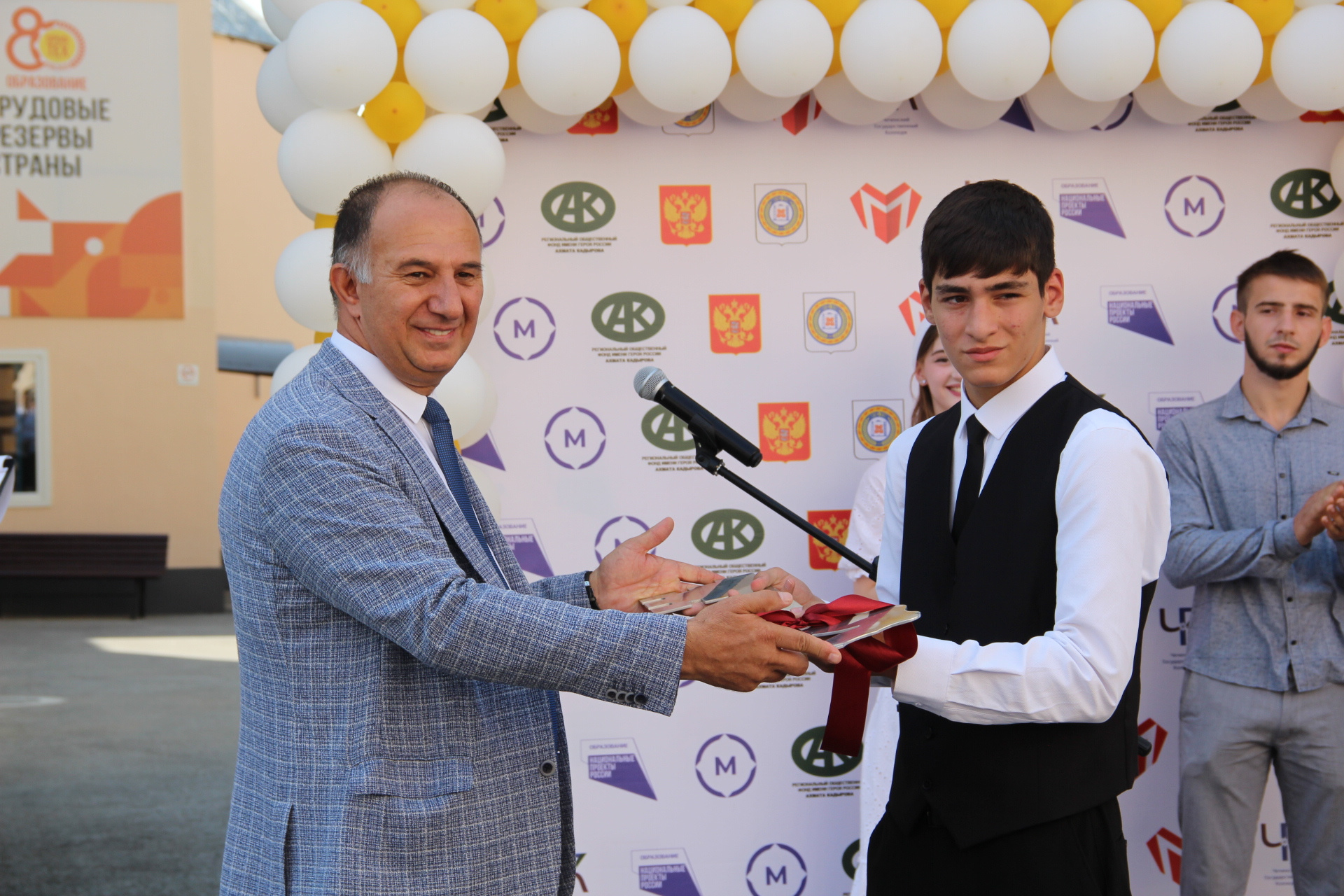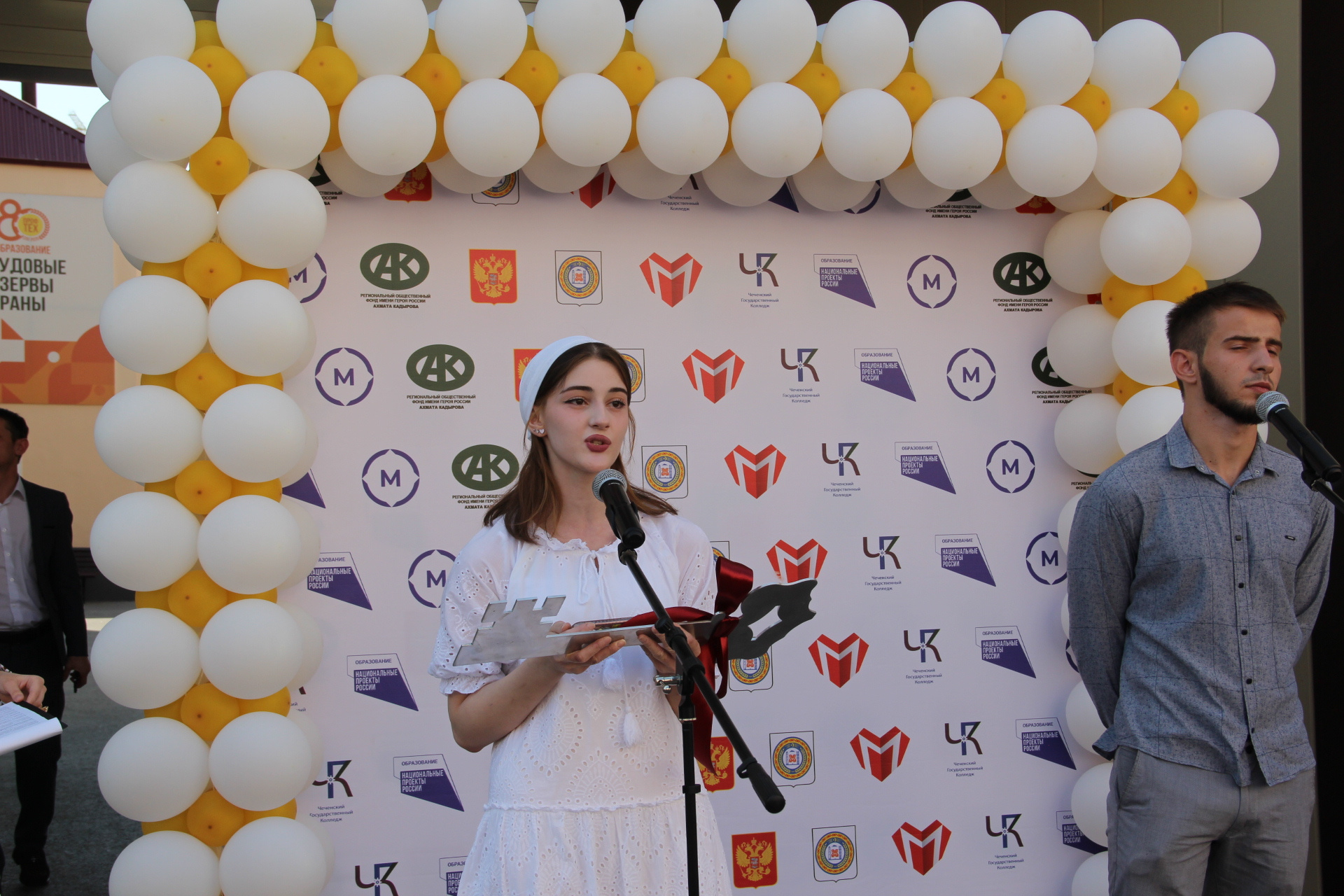 Также в мероприятии приняли участие успешно трудоустроившиеся выпускники колледжа Касумов Магомед и Умарова Луиза, которые пришли поприветствовать молодое поколение и передать символичный «ключ знаний», переходящий от выпускников к первокурсникам.