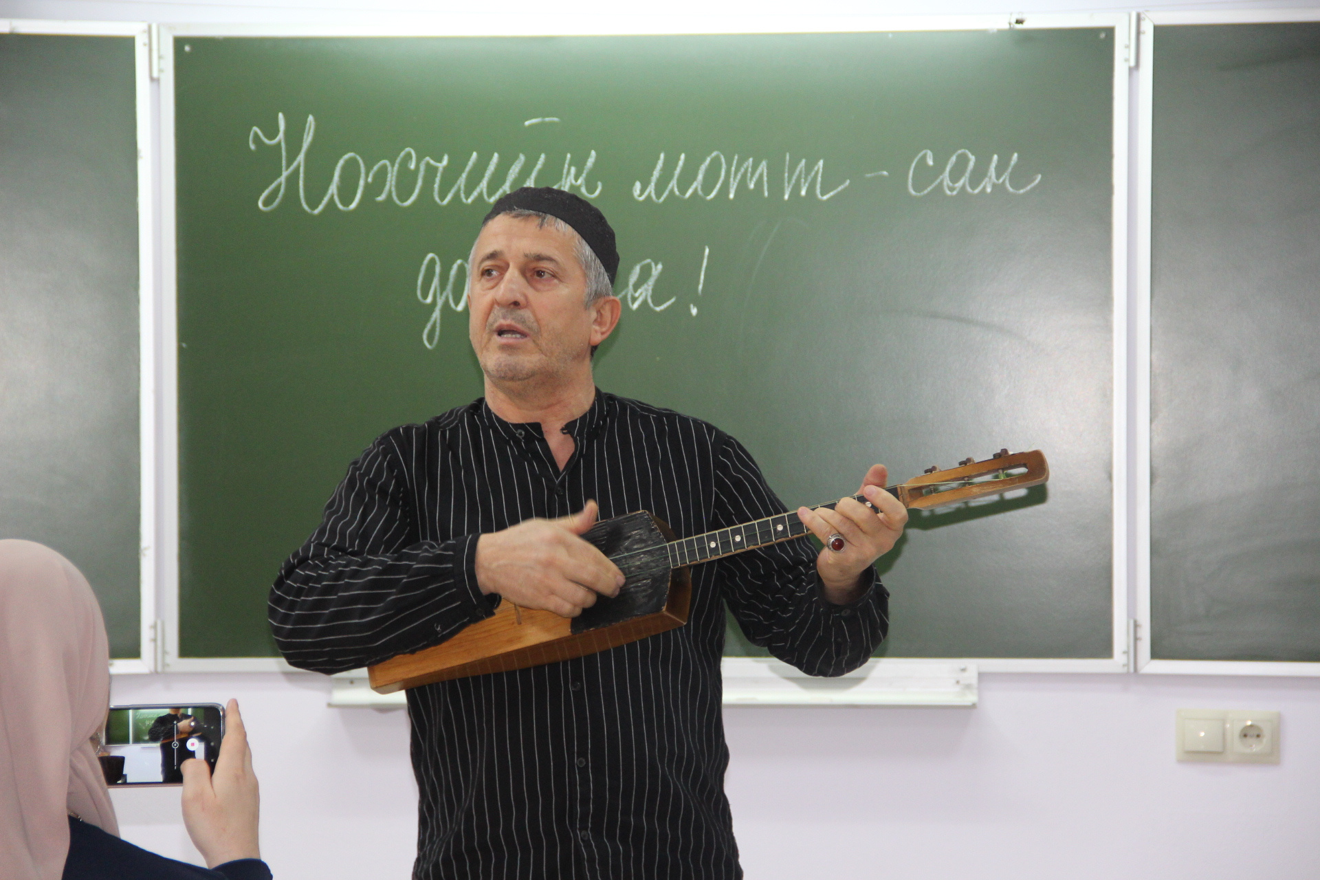 Почётным гостем семинара стал заслуженный работник культуры, руководитель оркестра народных инструментов Арсан Кусариев. Он исполнил песню на слова Шайхи Арсанукаева "Ненан Мотт".
