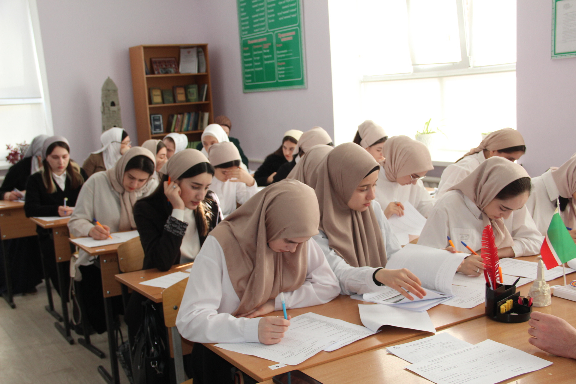 Сегодня студенты и преподаватели Чеченского государственного колледжа приняли участие в Региональном этнографическом диктанте «Беза, бовза ненан мотт!», приуроченном к Международному дню родного языка.