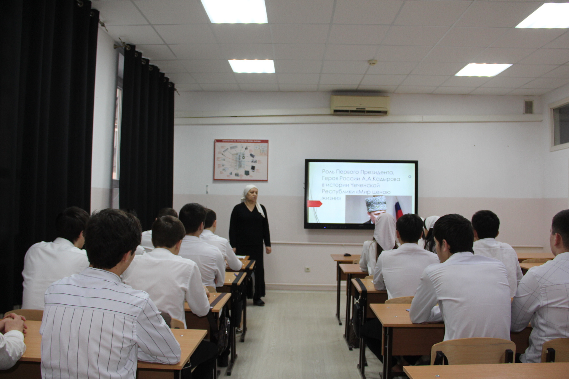 Жизнь и деятельность этого человека являлась подвигом, обеспечившим разгром религиозного экстремизма на Северном Кавказе, что, в свою очередь, сохранило нерушимость южных границ России и целостность нашего государства. Это обстоятельство подтверждает глубину и масштабность яркой исторической личности Ахмата-Хаджи Кадырова. Данное мероприятие было проведено с целью воспитания патриотизма на примере исторической личности А.А. Кадырова, оставившей яркий след в истории Чеченской Республики.
