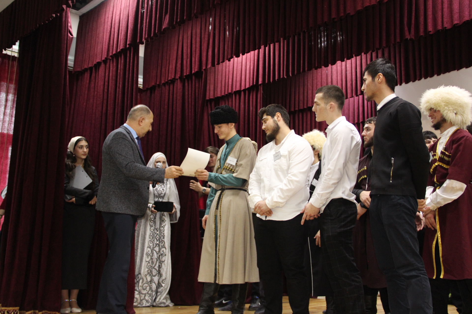 01.03.2023в честь празднования Дня джигита, прославляя сильную половину чеченского народа, в Чеченском государственном колледже прошло мероприятие в виде смотра на лучшего джигита.