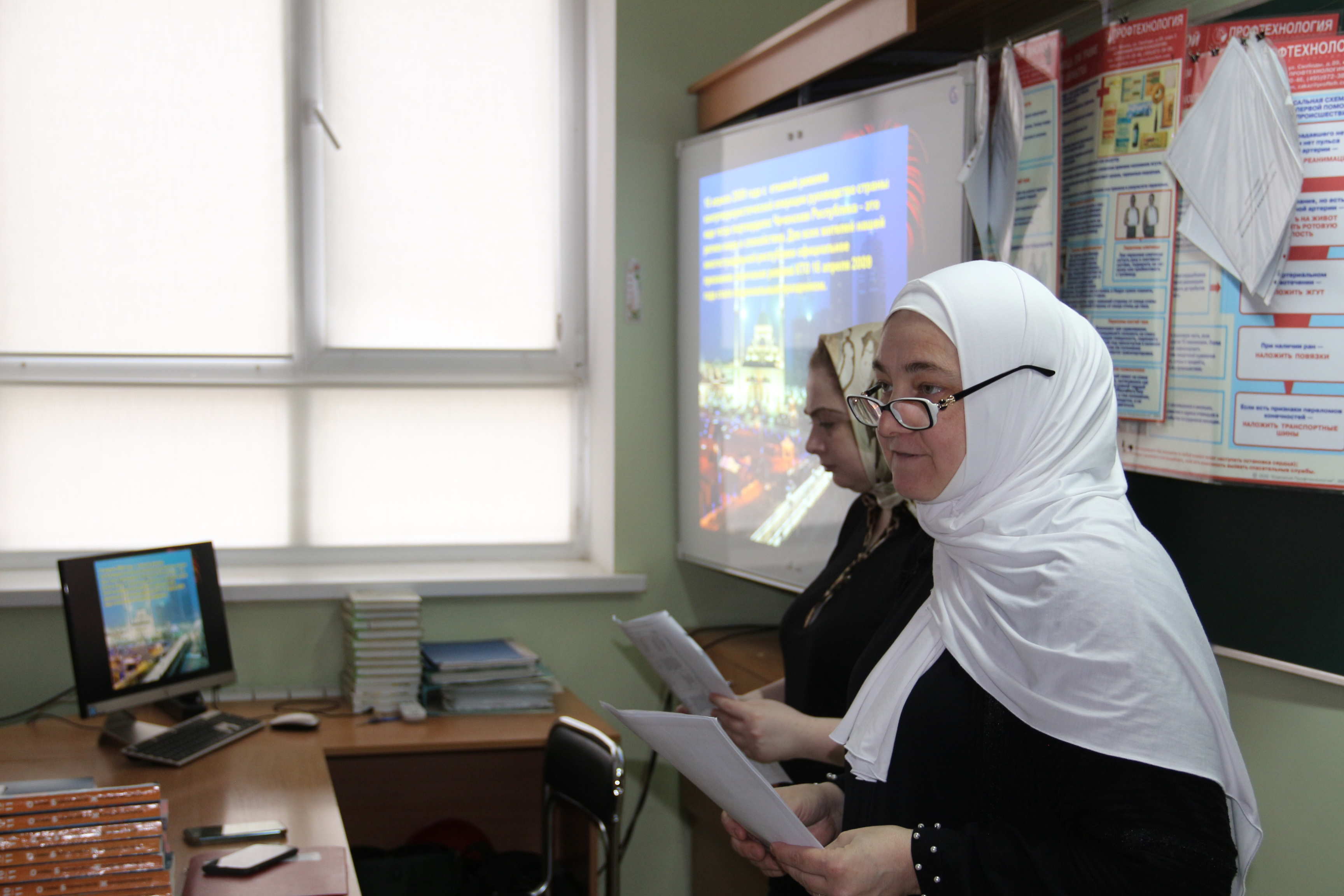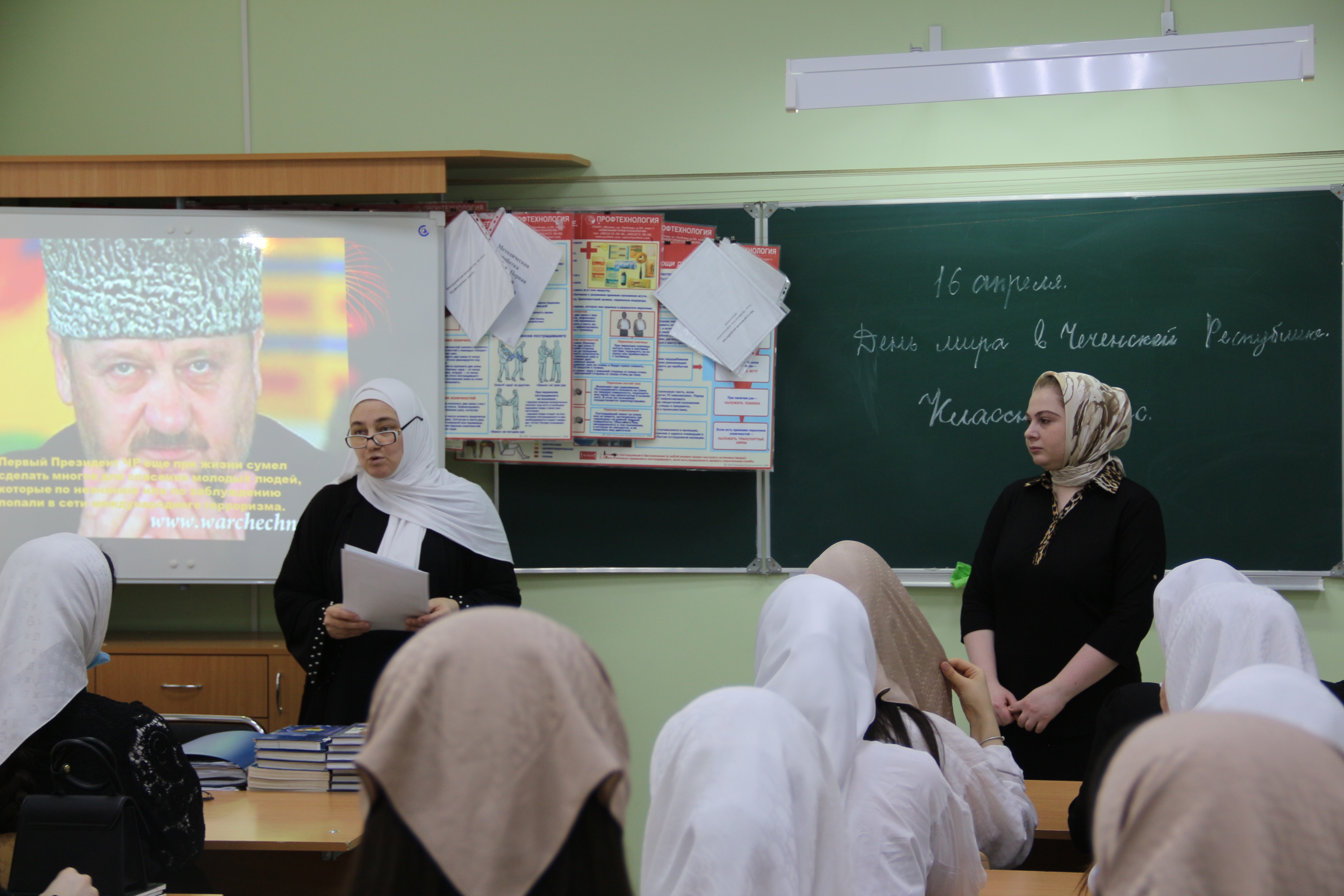 Вниманию студентов были представлены видеоролики, содержащие сюжеты прошедших в Чечне военных действий, что послужило более глубокому осознанию ребятами значимости Дня мира для всего чеченского народа. После просмотра фильмов, занятие прошло в форме живого диалога.