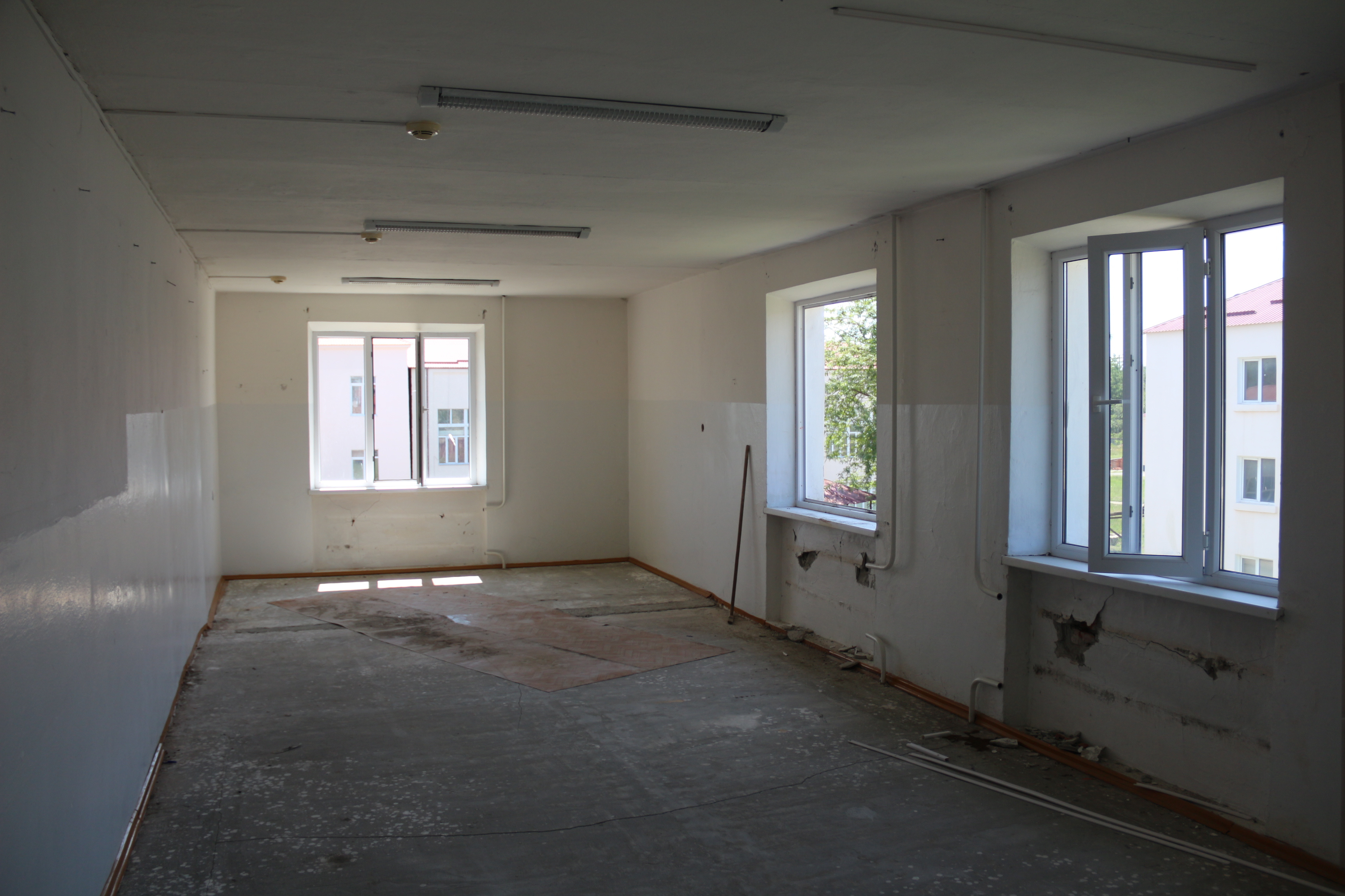 Путем демонтажа межкомнатных стен создаются просторные помещения для проведения лабораторных работ и демоэкзаменов. Проводится косметический ремонт в аудиторных помещениях, монтаж электропроводки, водоснабжения и отопления. На каждом этаже будут созданы санитарно-бытовые помещения для обучающихся.