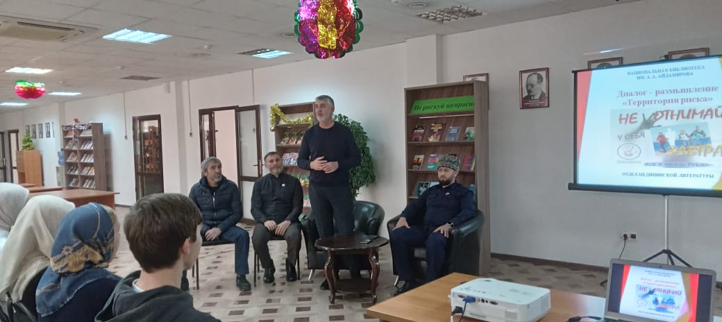 Студенты Чеченского государственного колледжа 22 декабря приняли участие в мероприятии прошедшем в отделе медицинской литературы Национальной библиотеки имени А.А.Айдамирова, в рамках программы по профилактике наркомании, алкогольной, табачной зависимости и пропаганде здорового образа жизни «Наш выбор-здоровье» диалог - размышление «Территория риска»