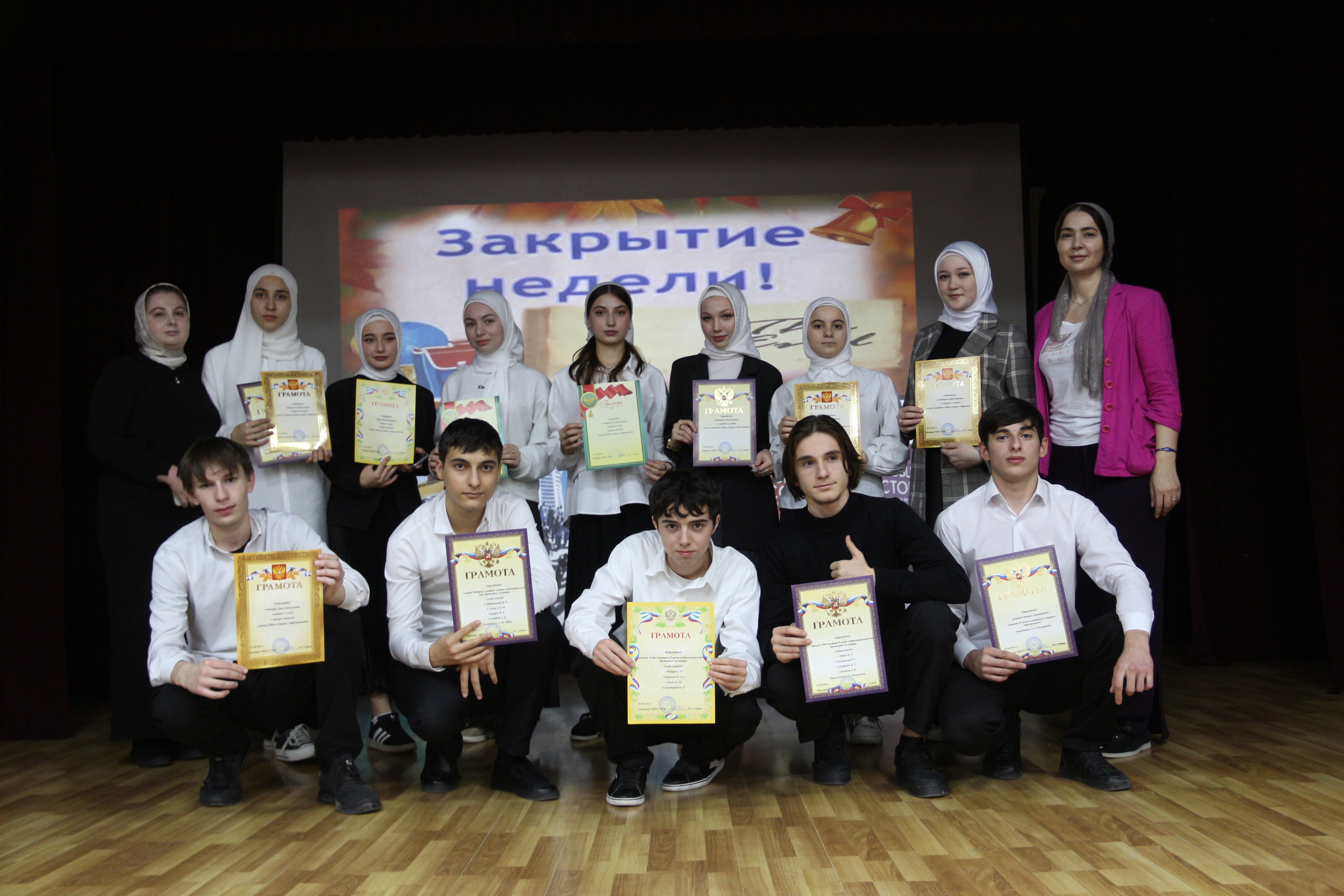29 марта прошло официальное закрытие Недели истории и обществознания. В ходе мероприятия, прошло чтение стихов М.Исаковского «Куда б ни шёл», показаны документальные фильмы посвященные ВОВ, и конечно обзор мероприятий Недели. В завершении мероприятия прошло торжественное награждение студентов, занявших призовые места в олимпиаде, брейн-ринге и конкурсе стенгазет, который проходил на протяжении всей недели. Также были отмечены студенты принявшие активное участие в мероприятиях Недели.