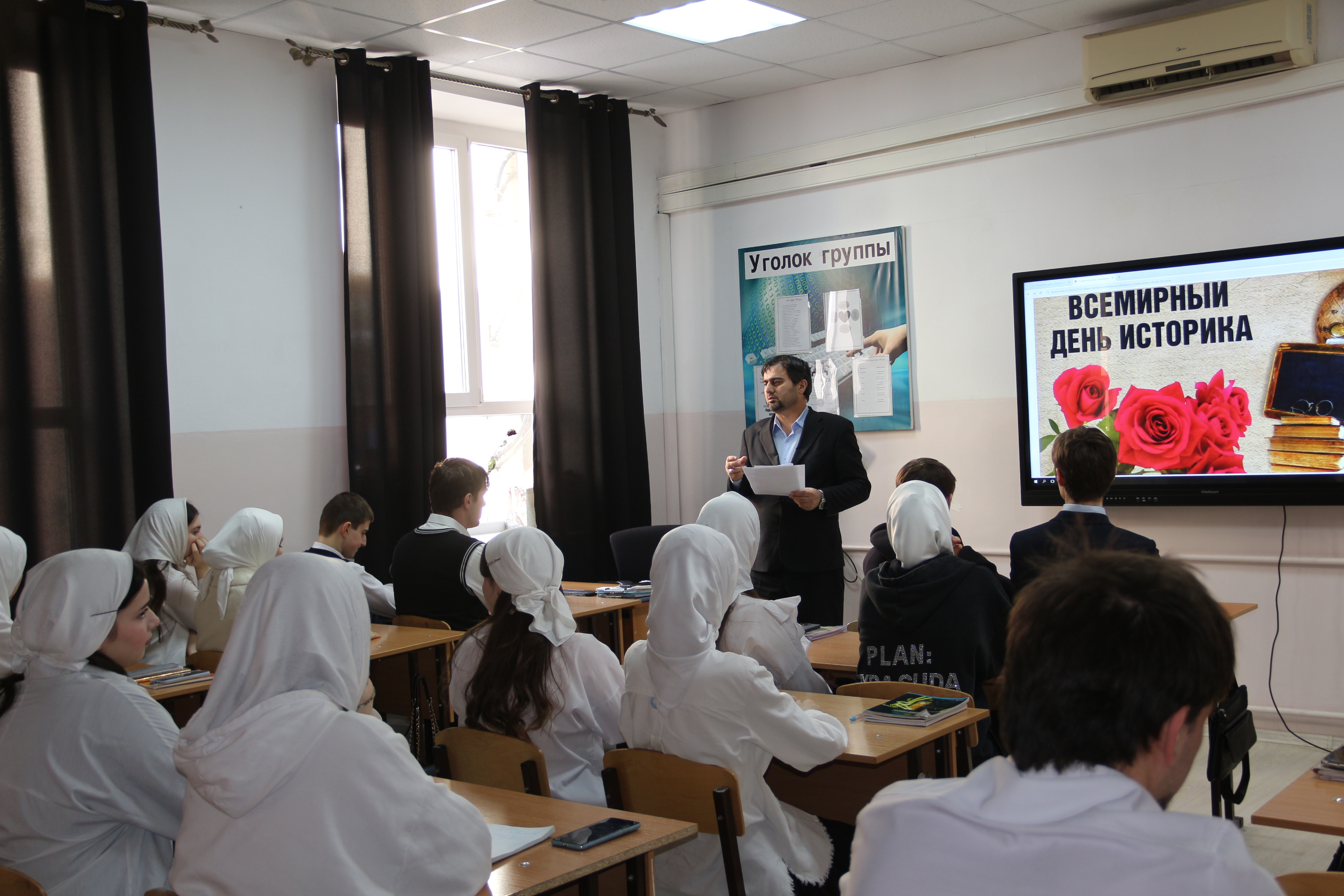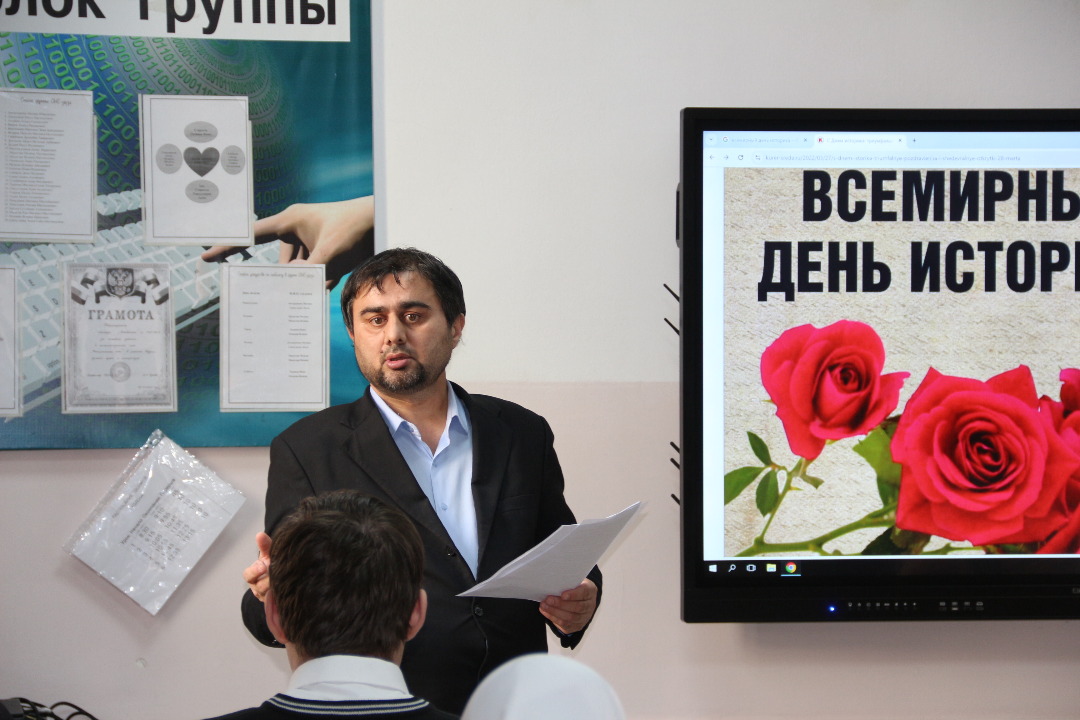 27 марта Асабаев А.Б. повел круглый стол на тему «День историка». Преподаватель говорил об учреждении данной даты, о выдающихся историках и их роли для потомков.