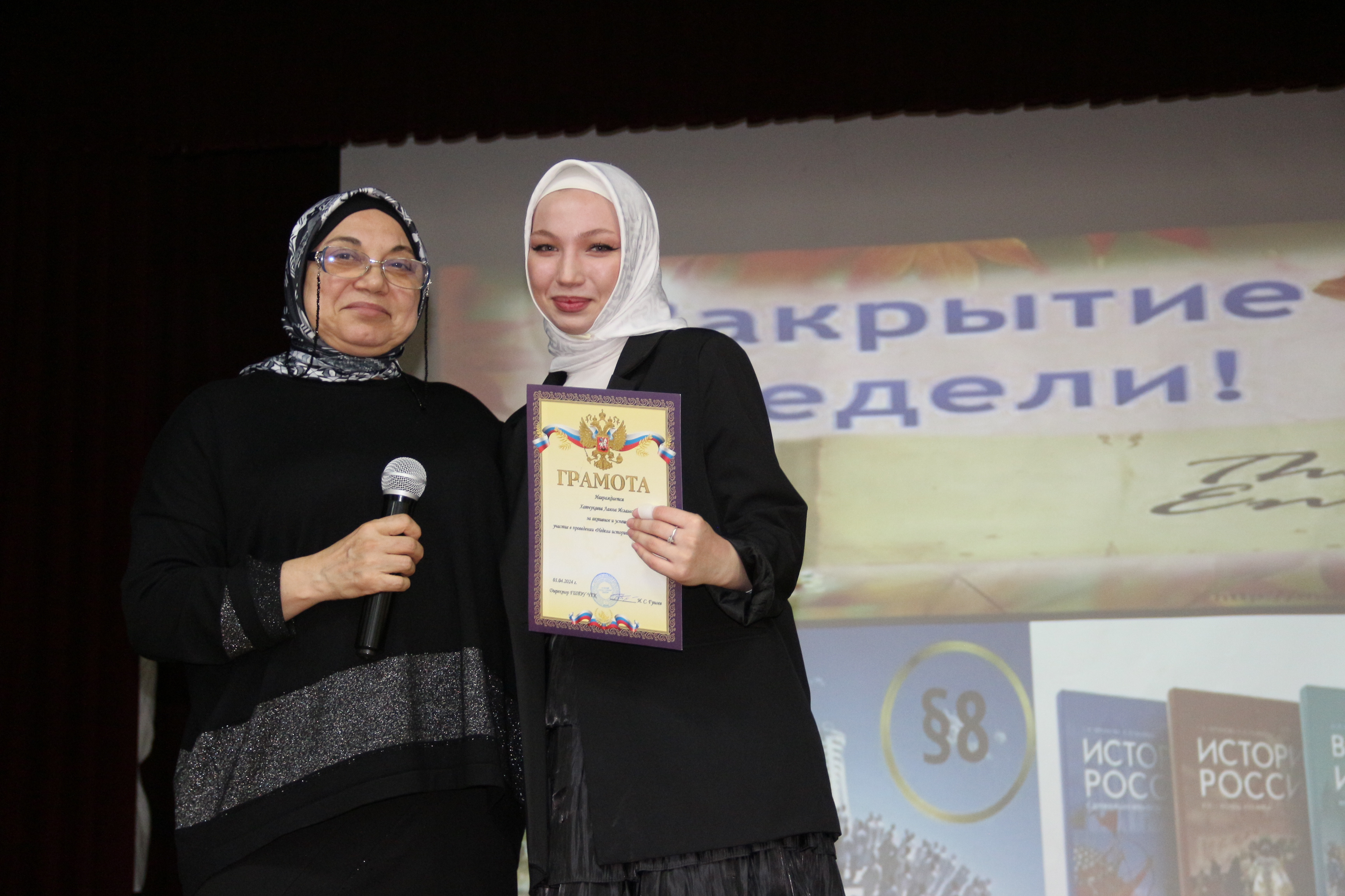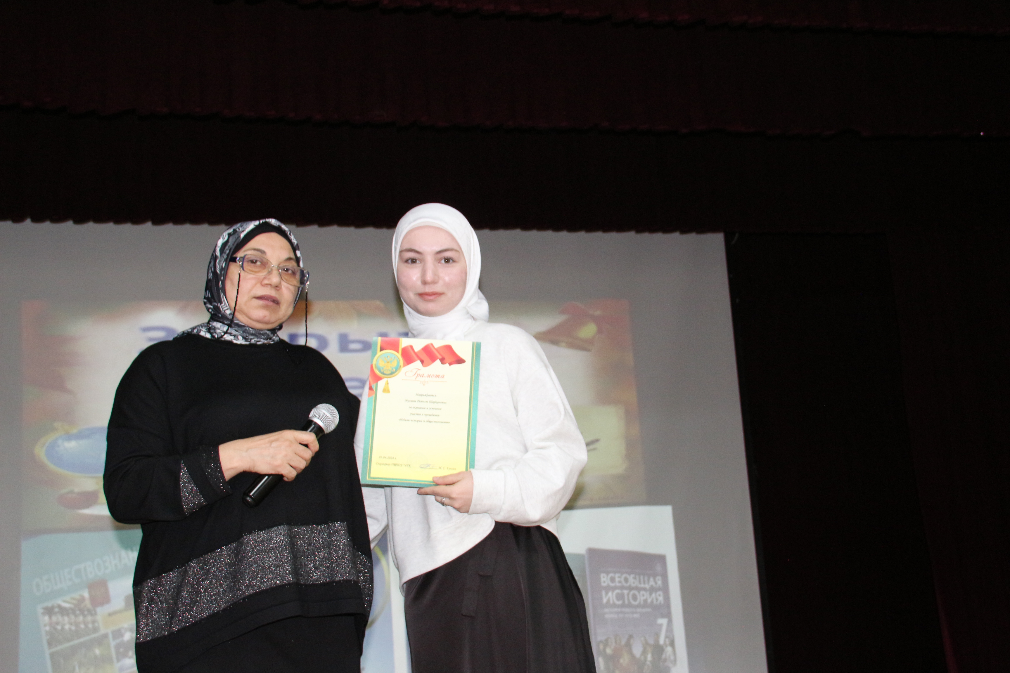 25 марта открыла Неделю Шахмерзаева З.А., в ходе которого ведущие провели обзор выдающихся историков и социологов, рассказали краткую характеристику наук истории и обществознания. Мусаева Макка прочитала стихотворение Константина Симонова «Родина». Прошел просмотр видео Редьярда Киплинга «Заповедь». А также была организована Викторина со зрителями «О праве в шутку и всерьёз».