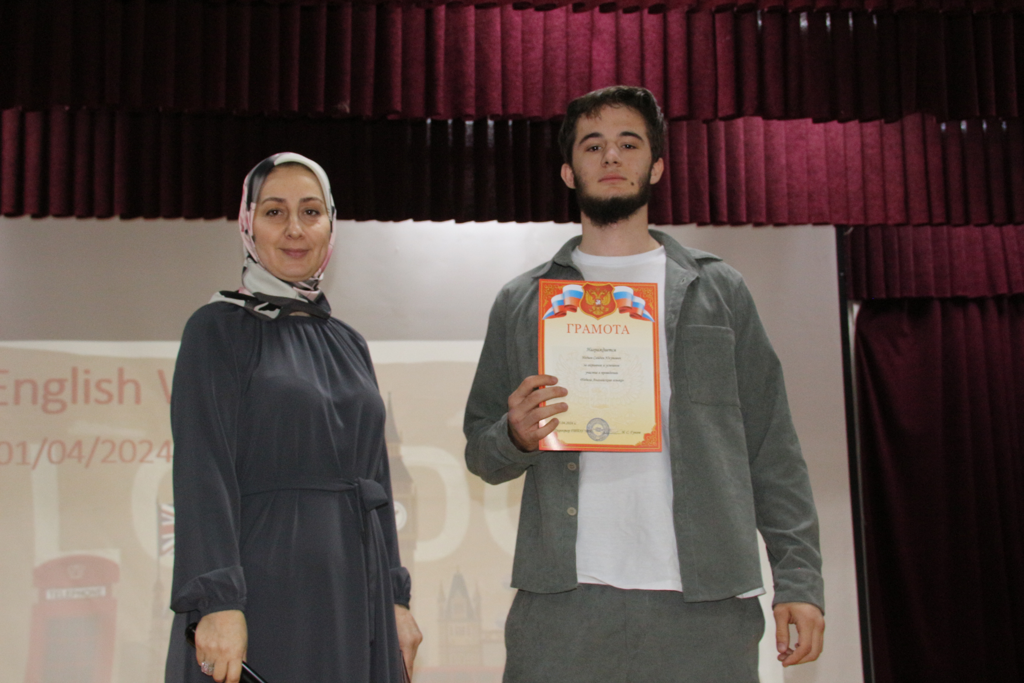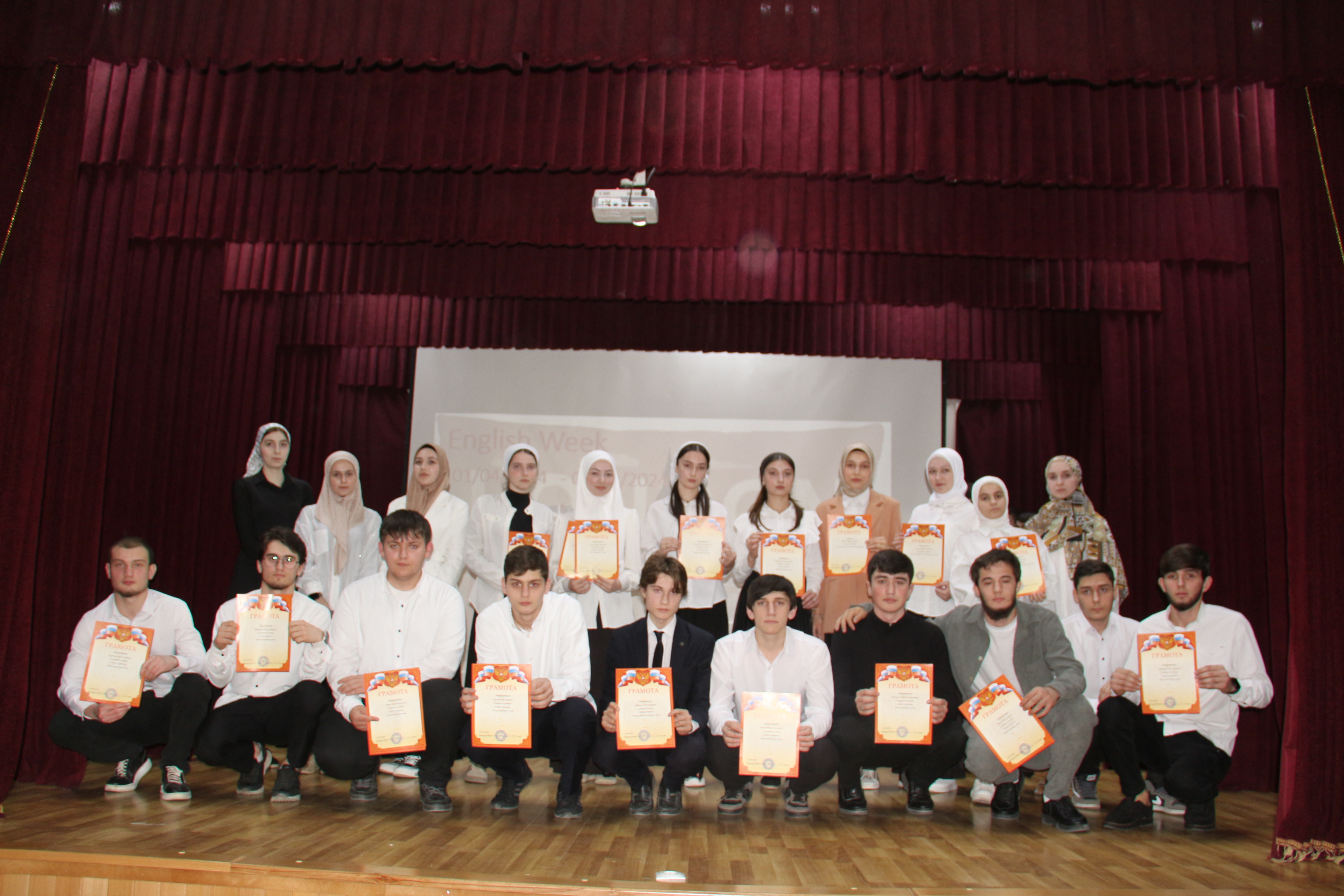 По итогам всех туров призовые места распределились следующим образом: 1 место- команда ТЭК-922, 2 место - команда ДОУ-922.1 и 3 место - команда ДОУ-922.2. 2 марта Коруева Х. Ш. провела Олимпиаду по Английскому языку среди первокурсников. Темы проведения: глагол ‘to be’, ‘Present Simple’, артикли. В ходе Олимпиады каждому участнику были выданы листы с заданиями, где нужно было вставить правильную форму глагола и вставить артикли там, где они необходимы. 1 место заняла- Вадуева Ирса. 2 место заняла - Эдилова Сабира. 3 место занял - Жамалов Магомед-Эмин. 4 марта Гайсумова И. И. провела Брэйн-ринг по английскому языку. В ней приняли участие группы: ТЭК-923, ДОУ-923.1, УПТ-922, ОИС-923.1. Студенты первого и второго курса были разделенные на 2 команды из 5 человек «Непризнанные гении» и «Орлы». Урок проходил в виде познавательной игры, состоящей из 5 туров:1 тур«Разминка» (warm-up), состоял из нескольких вопросов, где каждая команда по очереди отвечала на вопросы. 2 тур «Кто лучше прочитает скороговорку». 3 тур назывался «Битва капитанов» (captains), где капитан каждой команды индивидуально должен был ответить на вопросы на карточке в отведенное время. 4 тур «Грамматический», где командам нужно было вставить пропущенные буквы. 5 тур «Расставить слова в предложениях по порядку». По итогам всех туров, выиграла команда «Орлы» в составе который были: Байталаев Хабиб, Куркаев Шамиль, Итаев Абубакар, Газимаев Умар, Умаров Малик.