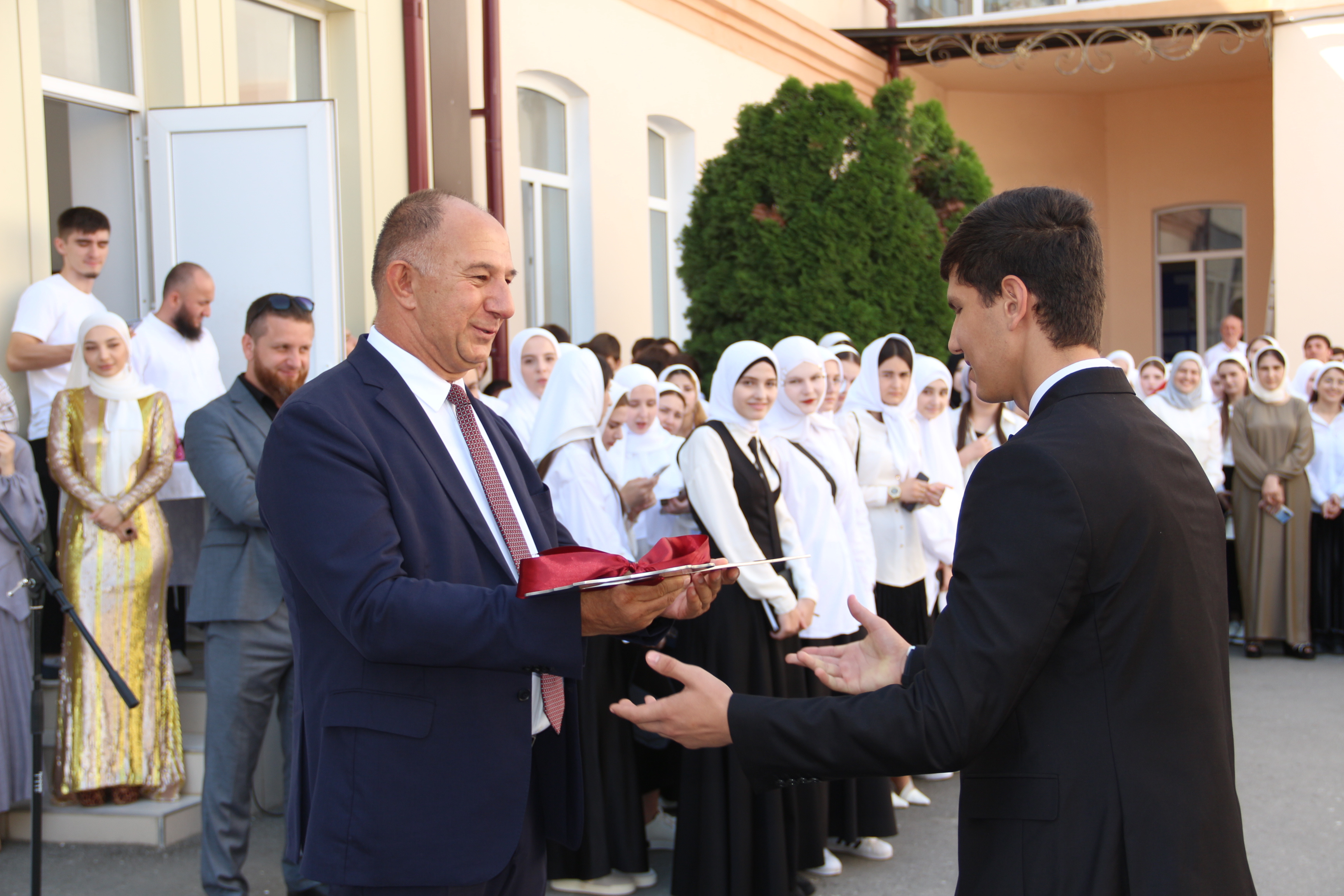 Линейка началась с поднятия Государственного флага РФ и национального флага ЧР. Под звуки гимна, символизирующего единство и гордость учебного заведения, был поднят флаг. Этот ритуал стал символом начала нового учебного года и стремления студентов к достижениям.