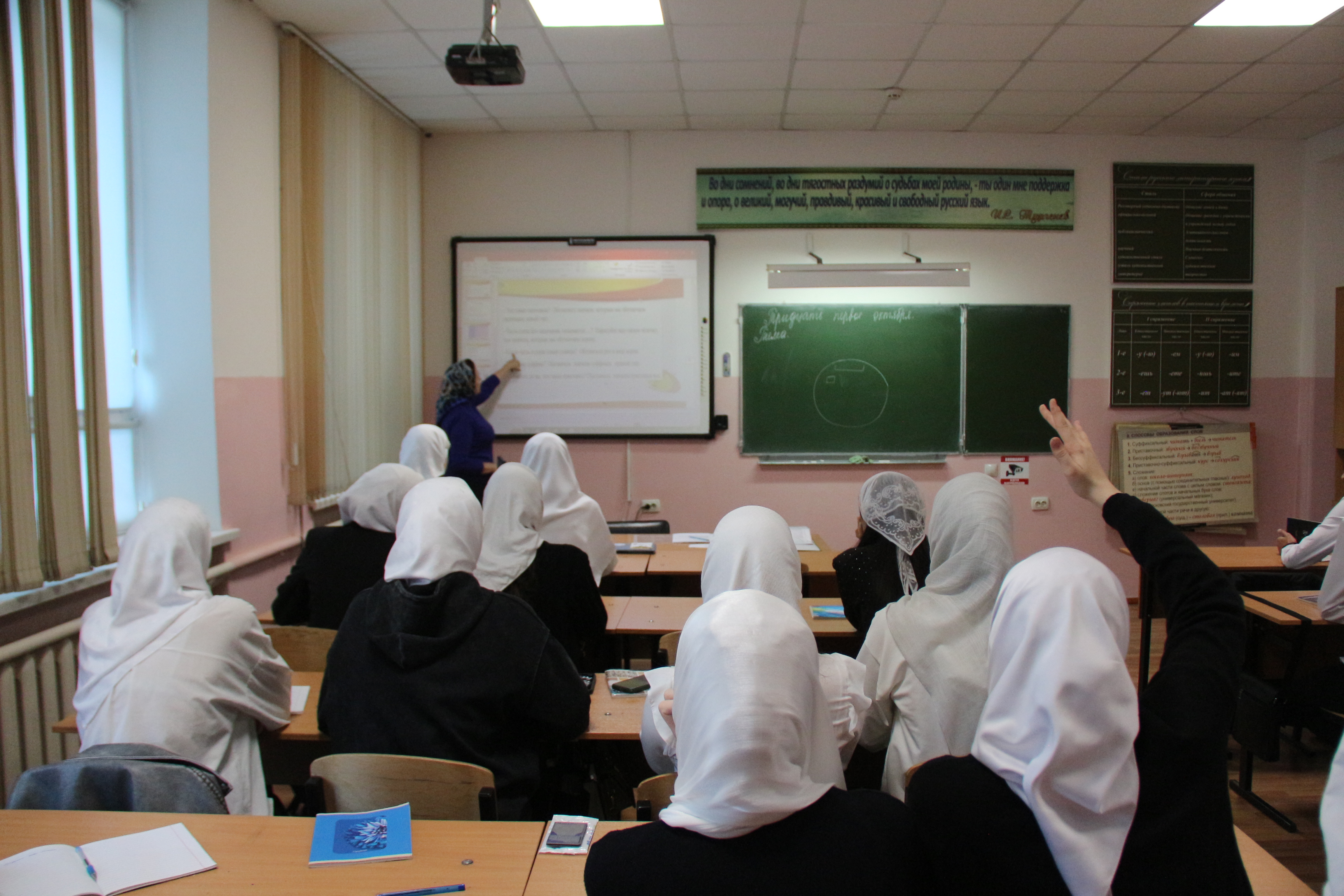 Преподаватель русского языка и литературы Хациева Роза Салмановна сегодня провела открытый урок по теме: " Правописание приставок на З-С ", приуроченный Предметной неделе.