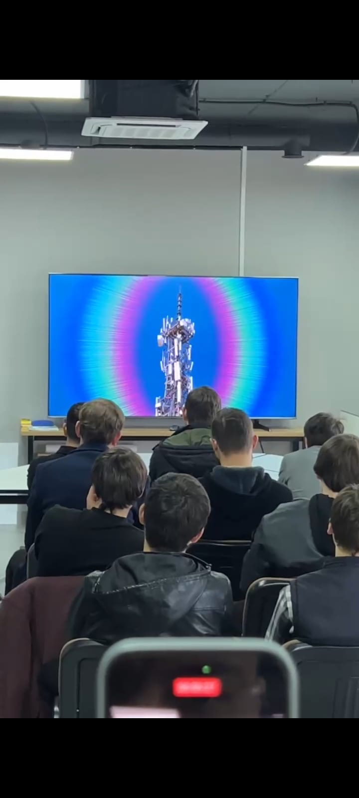 Начальник отдела строительства и электромонтажных работ Товдаев А.С. и специалист по кадрам Джумаева З.Ш. рассказали студентам о специфике строительства объектов связи - базовых станций и вышек сотовой сети. Был показан видеоролик, в котором объясняется значение возводимых объектов, показаны рабочие моменты, условия труда и отдыха сотрудников компании. Аслуди Товдаев рассказал о плюсах и минусах работы монтажника, ответил на интересующие студентов вопросы.