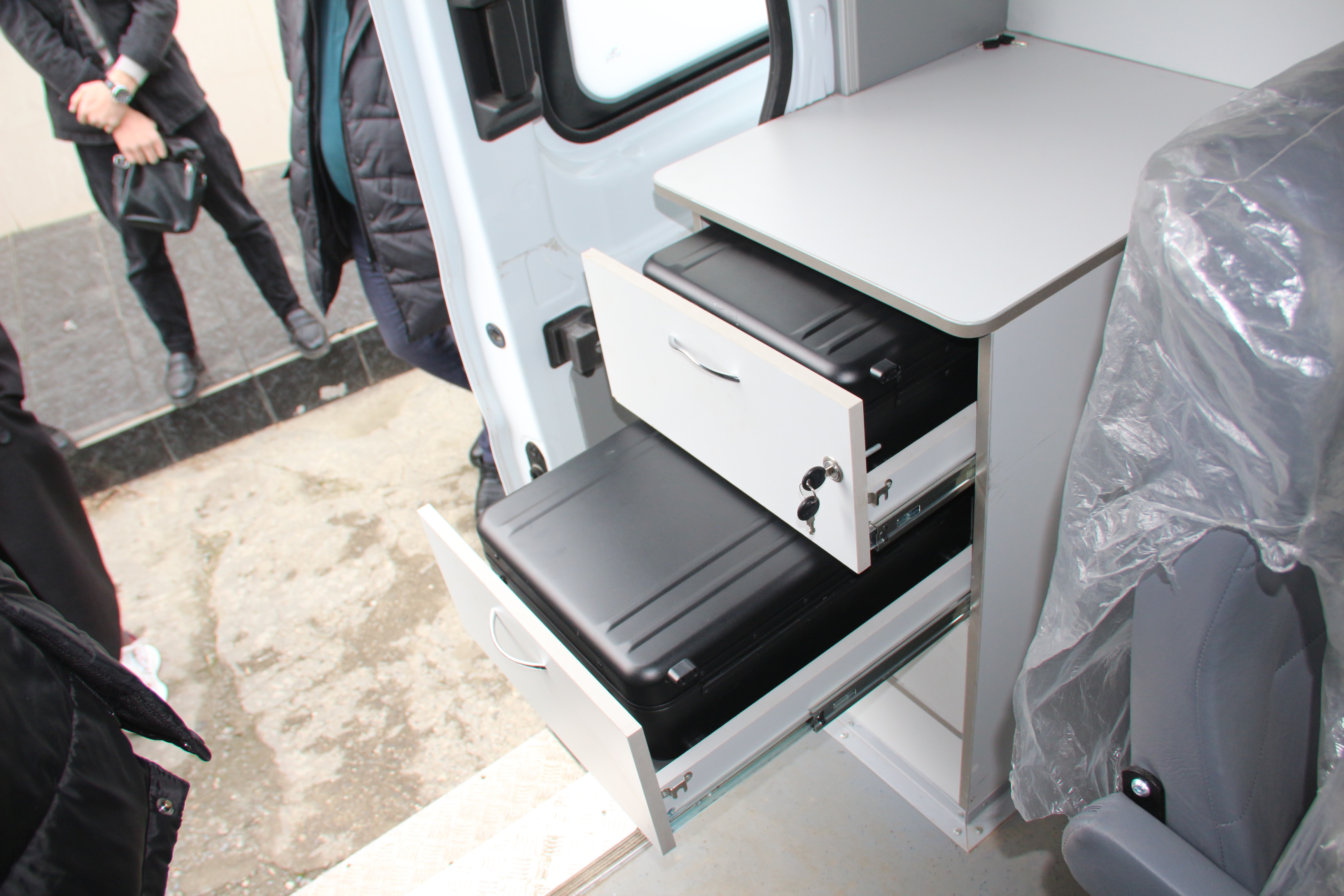 Далее сотрудники ЭКЦ рассказали молодым людям о передвижной экспертно-криминалистической лаборатории на базе автомобиля, на которой, в случае необходимости, специалисты могут выехать на осмотр места происшествия.