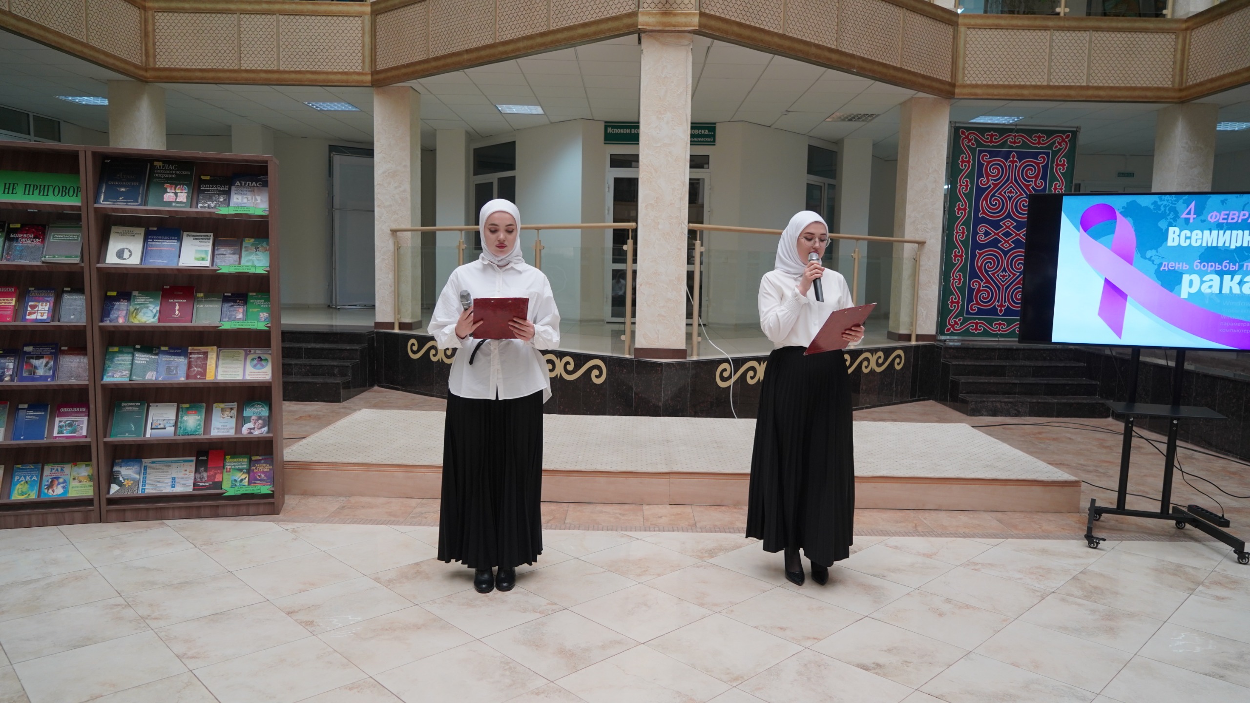 05.02.20254 февраля студенты ЧГК приняли участие в профилактическом мероприятии «Как жить без страха», приуроченном ко Всемирному дню борьбы с раковыми заболеваниями, которое прошло в Зимнем саду Национальной библиотеки ЧР