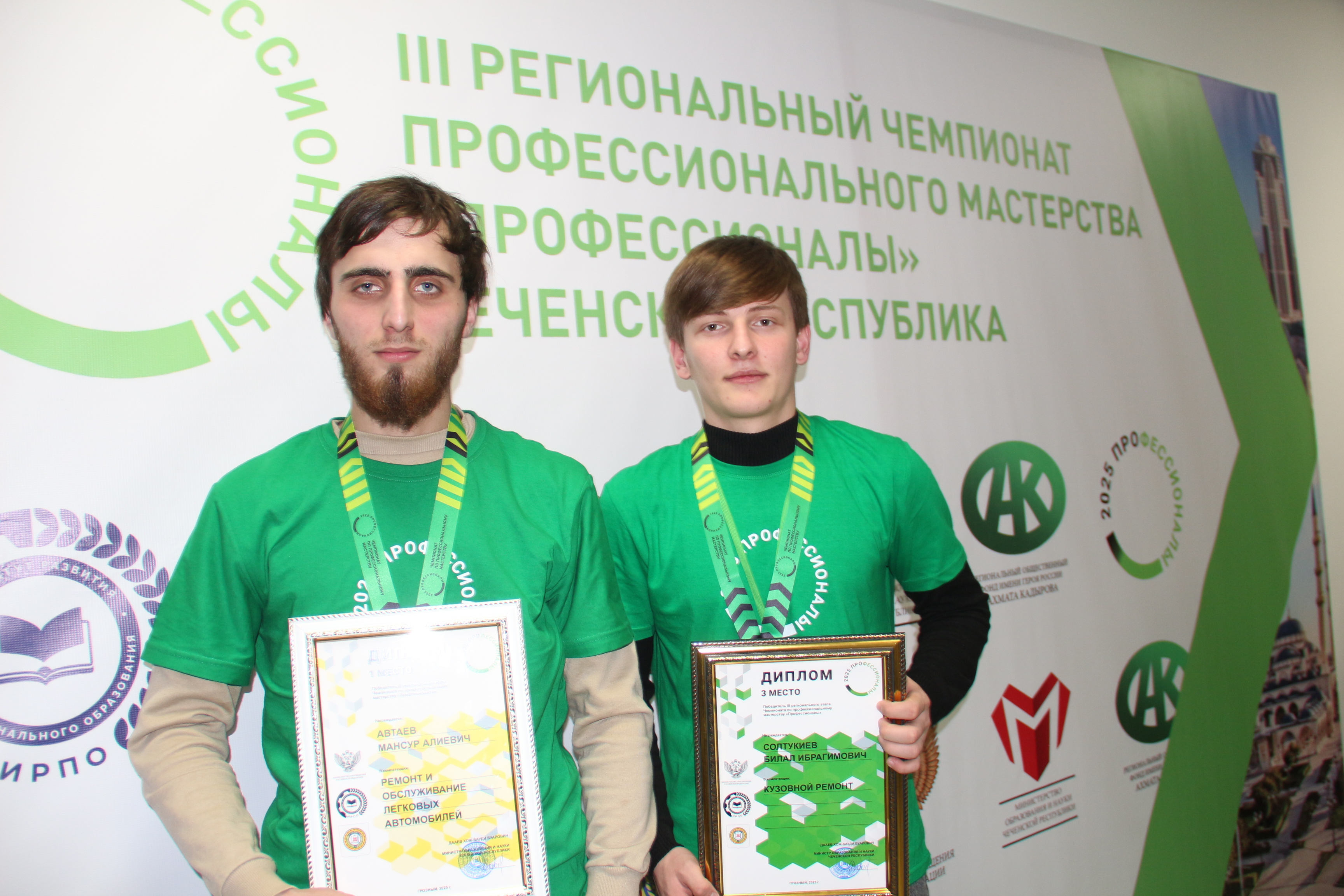 Третье место заняли: Солтукиев Билал Ибрагимович (Кузовной ремонт), Навурбиев Дени Виситаевич (Веб-технологии).