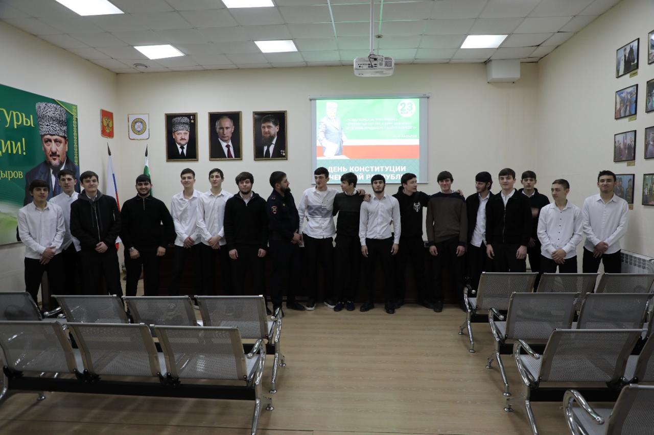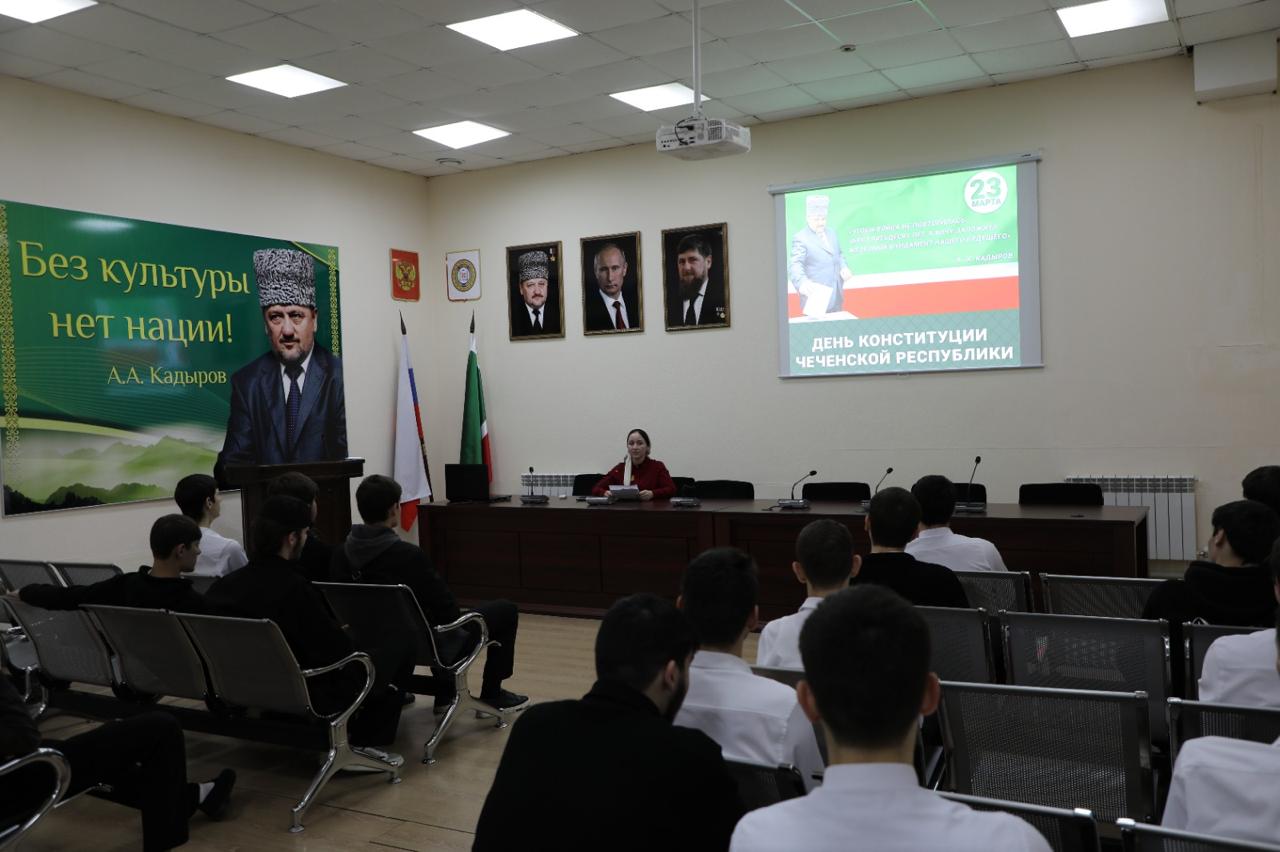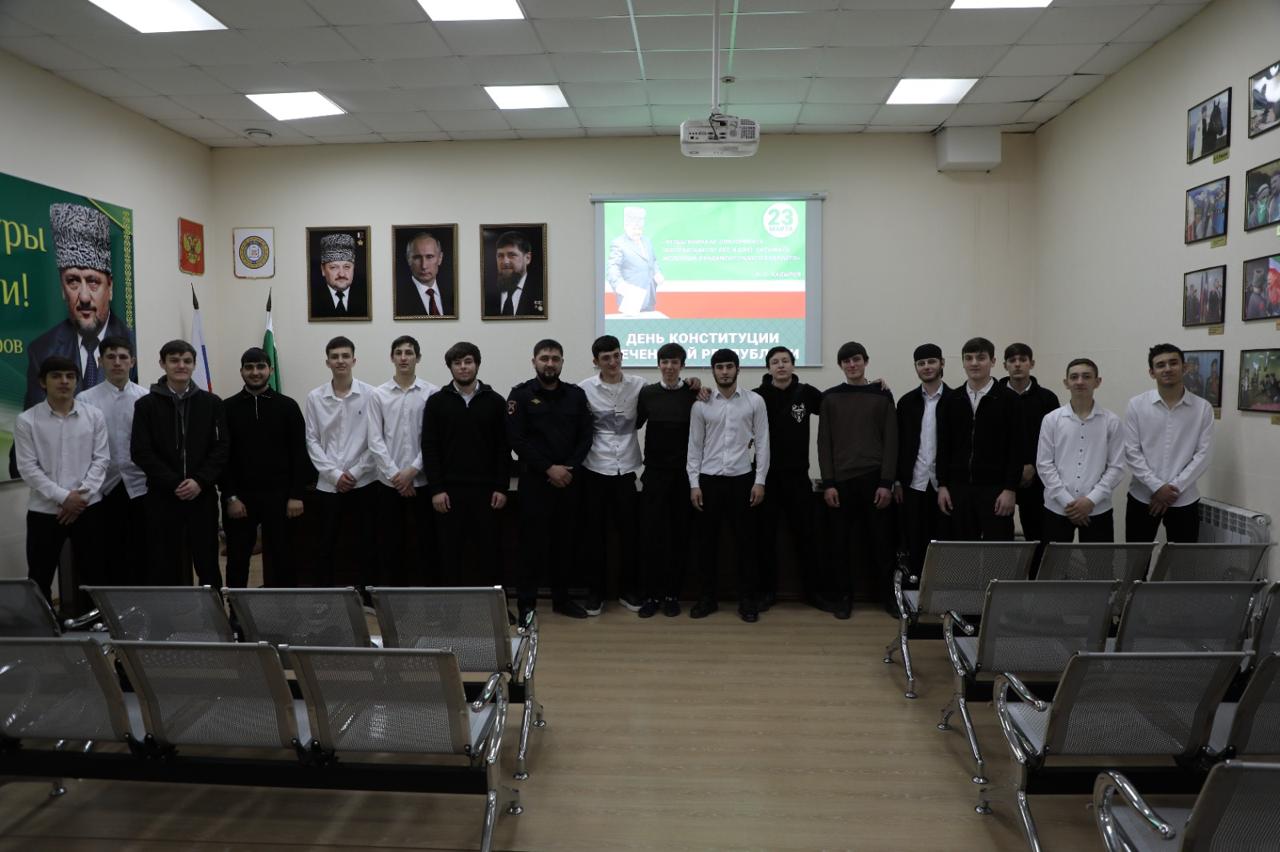 Студенты Чеченского государственного колледжа 24 марта приняли участие в лекции «Конституция ЧР- гарант стабильности и процветания», которая прошла в ГБУ «Мемориальный комплекс Славы им.А.А.Кадырова».