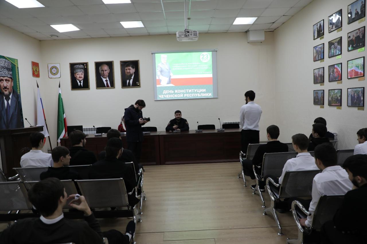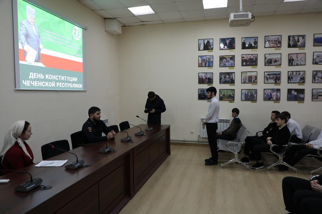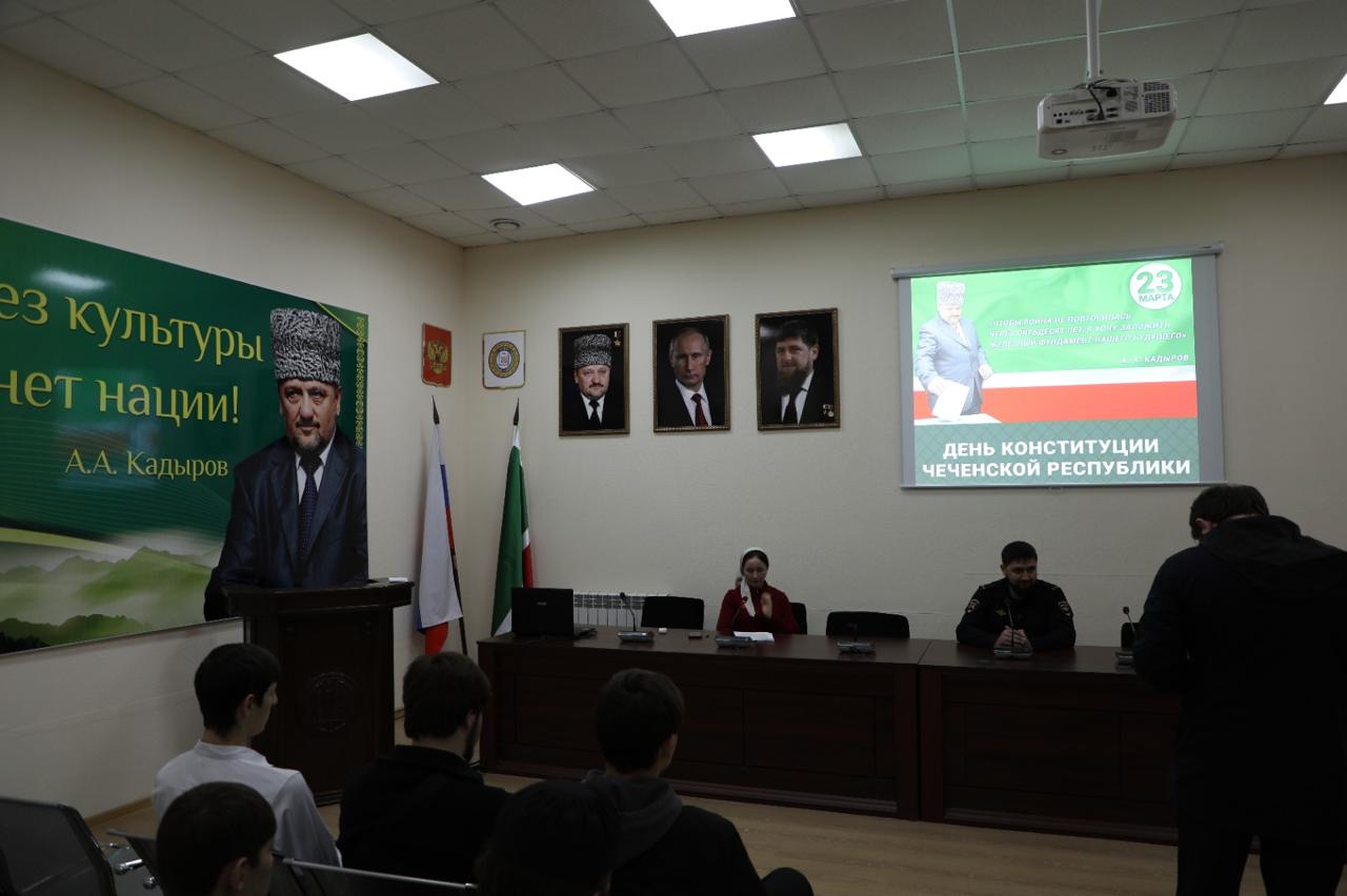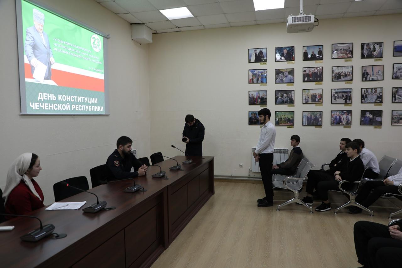 Студенты Чеченского государственного колледжа 24 марта приняли участие в лекции «Конституция ЧР- гарант стабильности и процветания», которая прошла в ГБУ «Мемориальный комплекс Славы им.А.А.Кадырова».