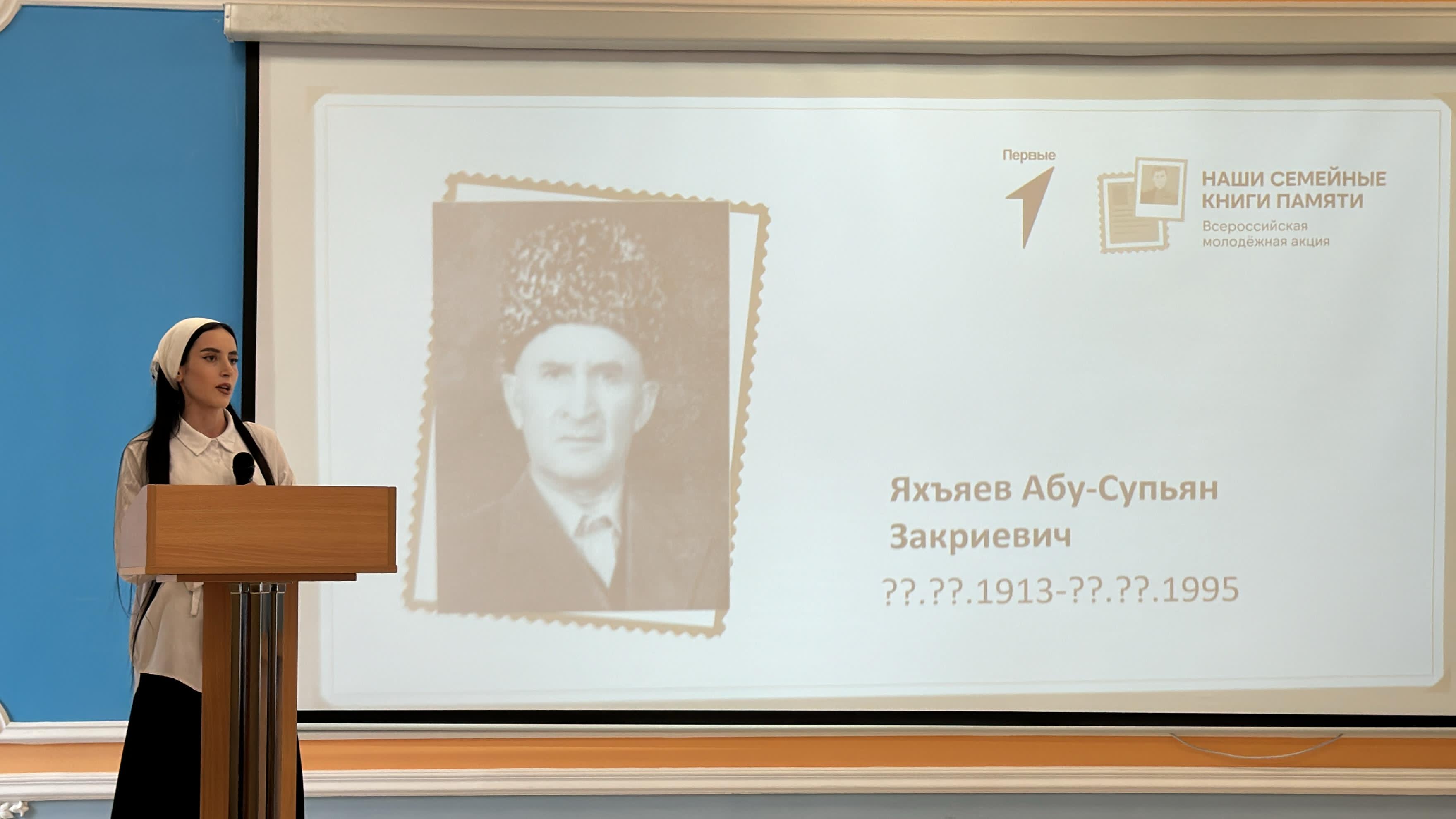 Студенты Чеченского государственного колледжа 10 апреля приняли участие во Всероссийской молодежной акции «Наши семейные книги Памяти», которая прошла на базе Грозненского педагогического колледжа.
