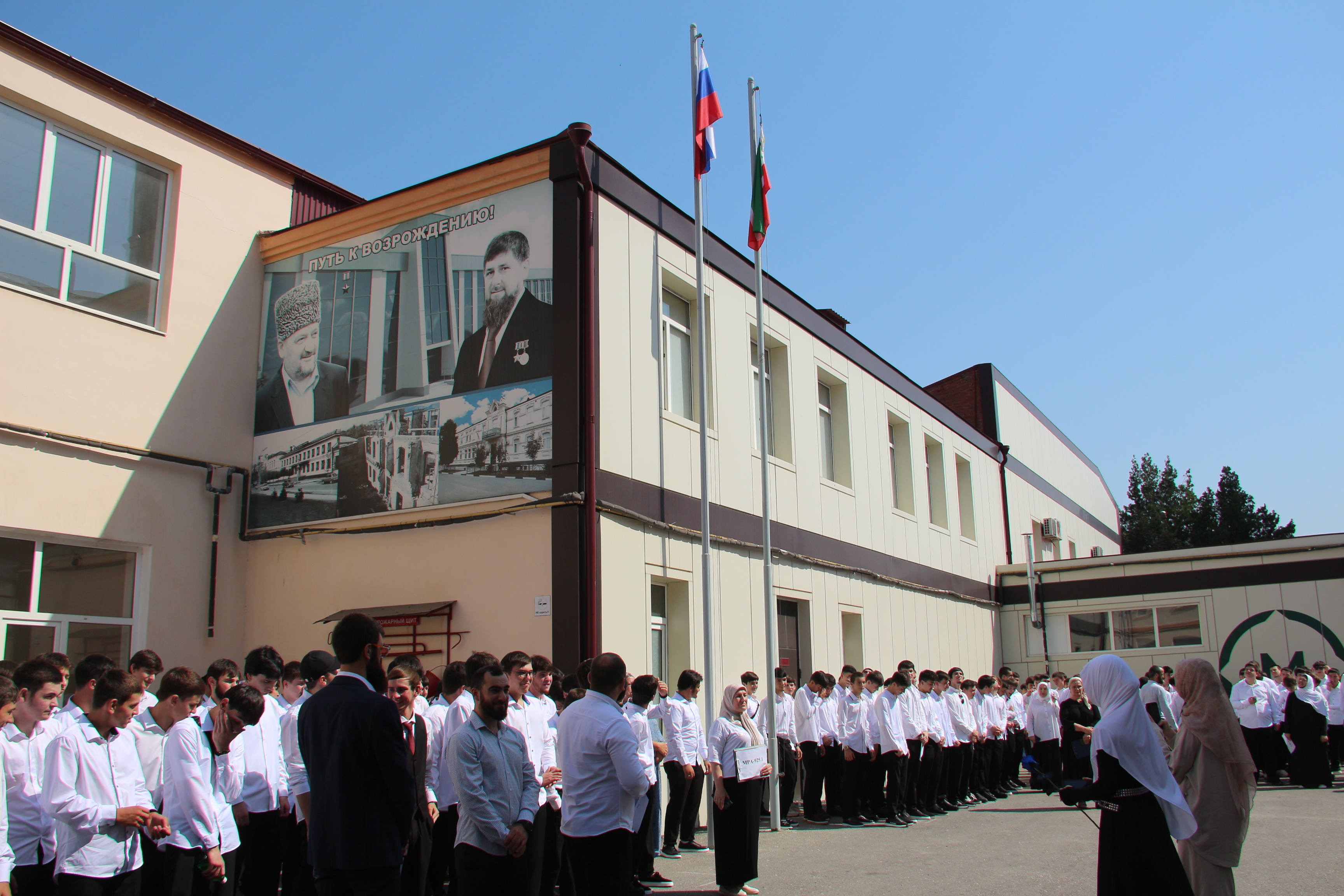 Линейка началась традиционно с поднятия Государственного флага РФ и Национального флага ЧР. Под звуки гимна, символизирующего единство и гордость учебного заведения, были подняты флаги.