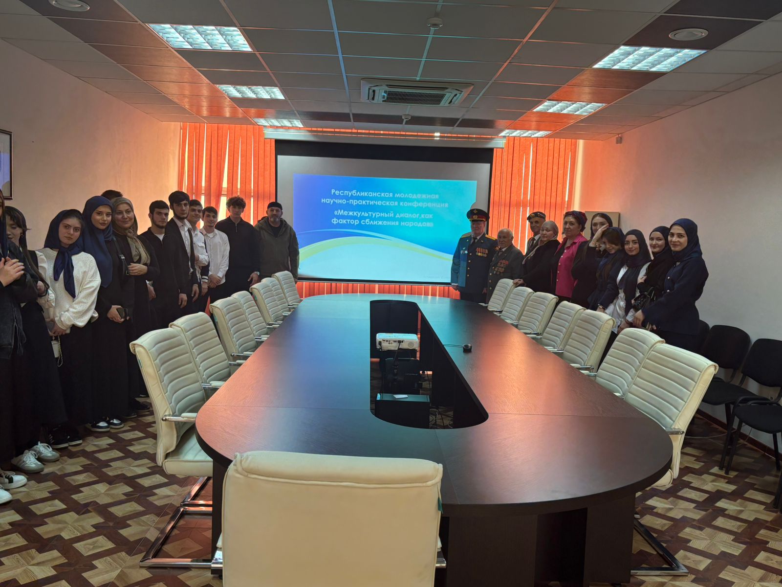 18 ноября в Национальной библиотеке им. А.А.Айдамирова студенты ЧГК приняли участие в республиканской молодежной научно-практической конференции «Межкультурный диалог, как фактор сближения народов». В нем принимали участие: Гучигов С.Б- председатель общественной организации по гармонизации межнациональных организаций, эксперт по национальным вопросам; Луганская С.В.-заместитель руководителя ЧРО Комитета Семей Воинов Отечества по взаимодействию с регионами ; Мурадова Е.Т.-координатор Всероссийской патриотической акции" Я вернулся, Мама...", а также общественные деятели республики.